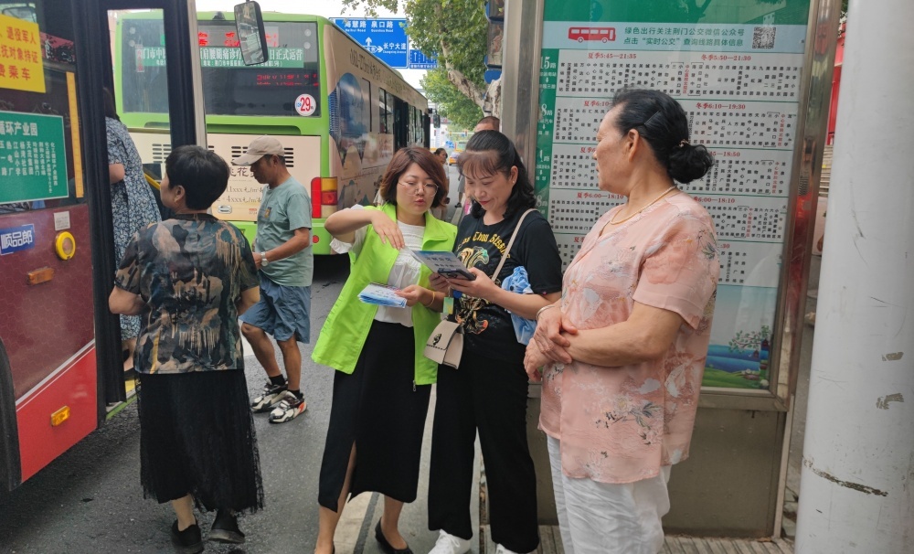 公交志愿者通過咨詢解答和發(fā)放綠色出行宣傳冊,向市民講解“實時公交”、移動支付方法,并邀請市民對公交服務(wù)質(zhì)量進行評議,廣泛征求市民的意見與建議。
